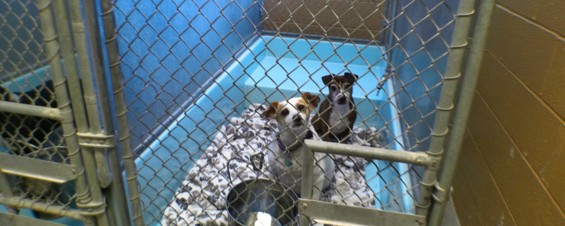 (On the far left is two dogs sharing a kennel; in the middle are three dogs sharing a kennel.)