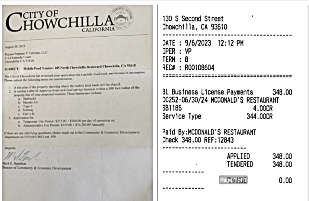 The violation of voters’ rights in the city was brought to attention by residents of Chowchilla due to the City’s unequal fees towards mobile vendors. In August 2023, Mark Hamilton, Director of Community & Economic Development, and city council members passed a new mobile vendor permit fee increase that would charge vendors $36,500 annually, while restaurants such as McDonald’s would be charged a permit fee of $348 annually